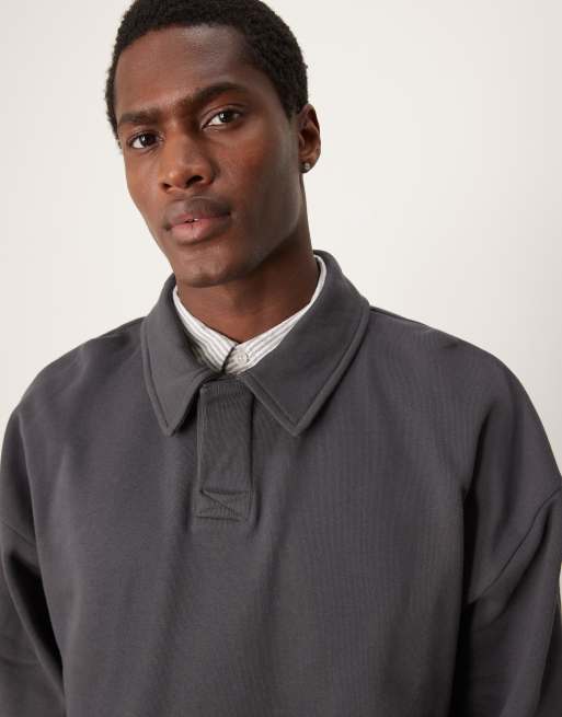 ASOS DESIGN – Szara bluza z kołnierzykiem polo, z obszytym dołem, część zestawu