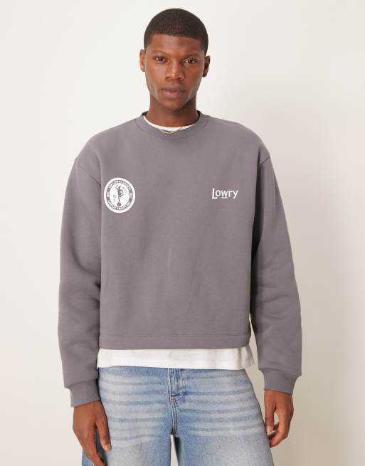 ASOS DESIGN – Szara bluza z nadrukiem na piersi i efektem sprania