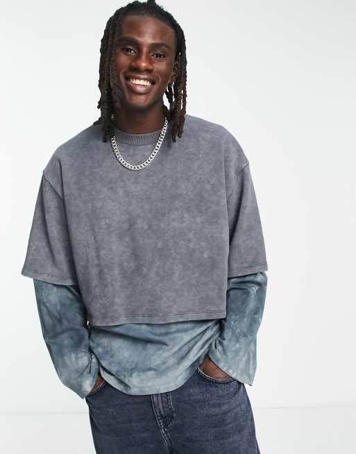 ASOS DESIGN – Szara dwuwarstwowa bluza oversize z efektem sprania i tie-dye
