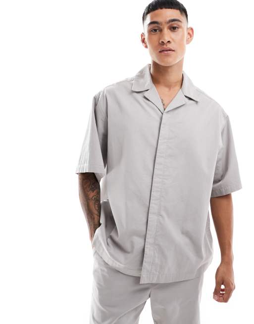 ASOS DESIGN – Szara koszula oversize z kołnierzykiem kubańskim, część zestawu
