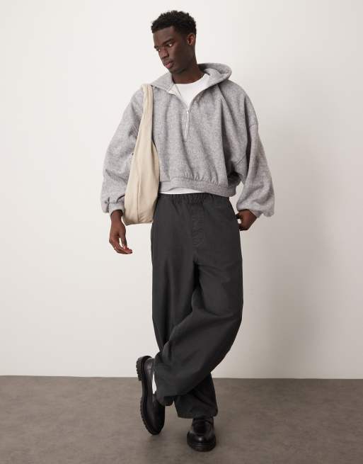 ASOS DESIGN – Szara krótka bluza extreme oversize z kapturem z grubego szczotkowanego polaru