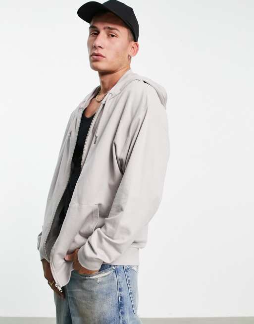 ASOS DESIGN – Szara lekka bluza oversize z kapturem zapinana na zamek