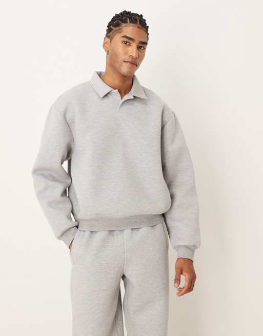 ASOS DESIGN – Szara luźna bluza z grubego materiału w stylu scuba z kołnierzykiem polo