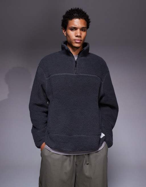 ASOS DESIGN – Szara luźna bluza z kożuszka z golfem
