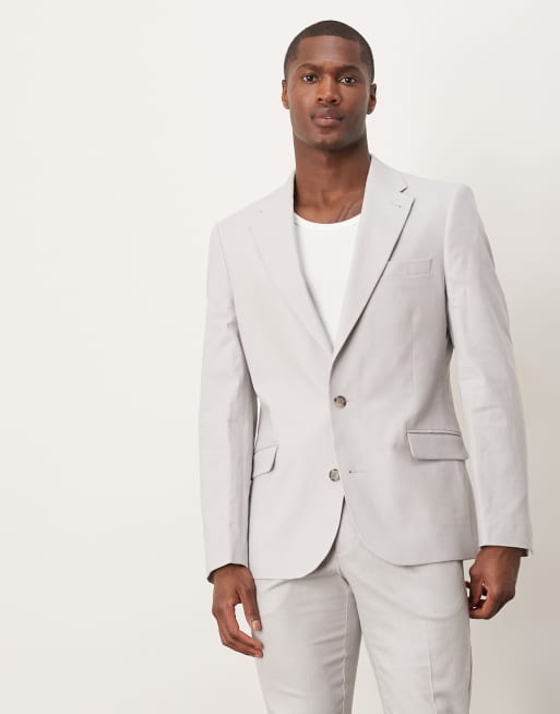 ASOS DESIGN – Szara marynarka garniturowa o obcisłym kroju, z materiału z dodatkiem lnu
