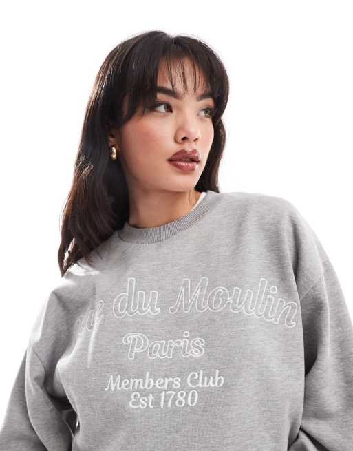 ASOS DESIGN – Szara melanżowa bluza dresowa oversize z haftowanym napisem „Rue de Moulin”