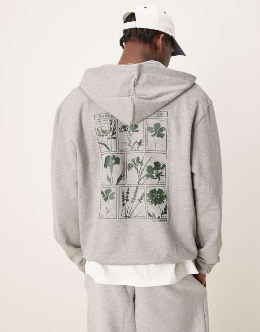 ASOS DESIGN – Szara melanżowa bluza z kapturem i nadrukiem na piersi i plecach