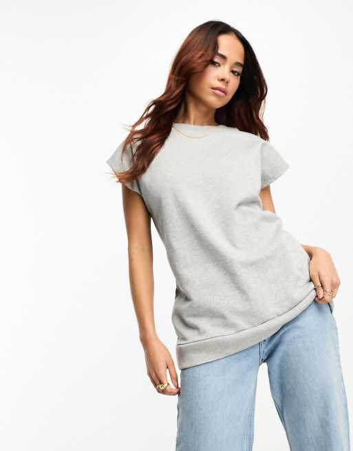 ASOS DESIGN – Szara melanżowa bluza z krótkimi rękawami