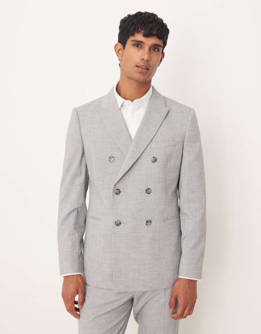 ASOS DESIGN – Szara melanżowa dwurzędowa marynarka garniturowa o dopasowanym kroju