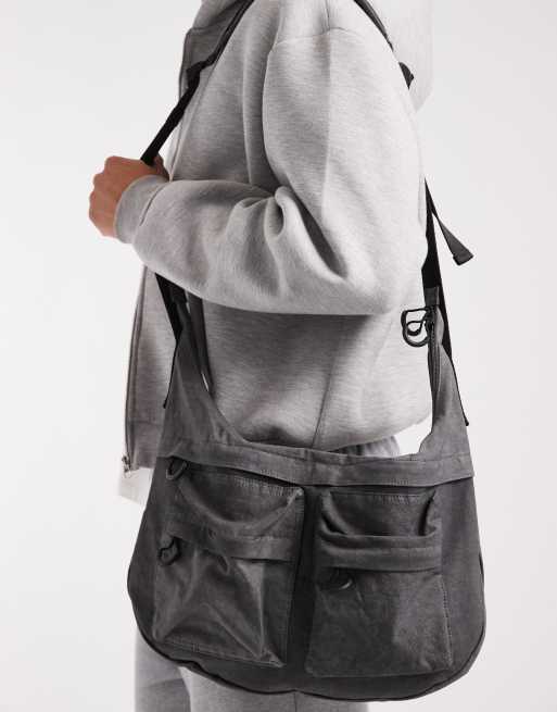 ASOS DESIGN – Szara płócienna torebka crossbody z efektem sprania i funkcjonalnymi wstawkami