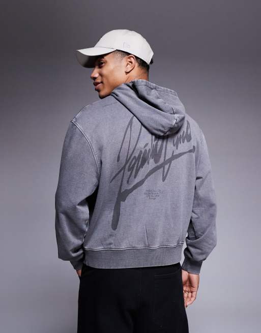 ASOS DESIGN – Szara pudełkowa bluza z kapturem, efektem sprania i nadrukiem