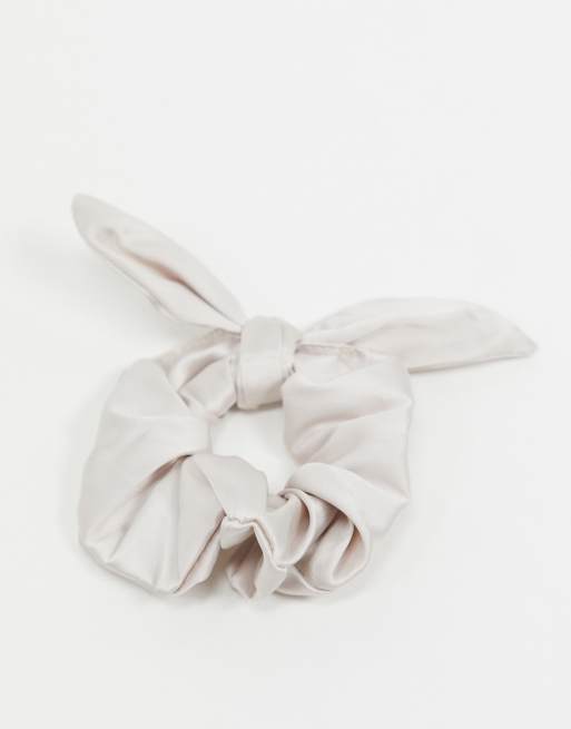 ASOS DESIGN – Szara satynowa gumka typu scrunchie z kokardką