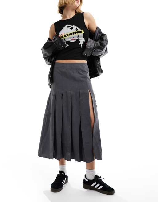 ASOS DESIGN – Szara spódnica midi z kontrafałdami i głębokim rozcięciem