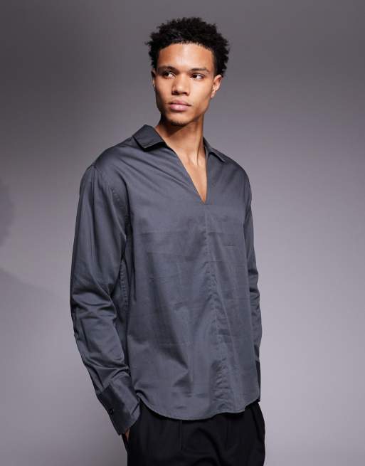 ASOS DESIGN – Szara zakładana przez głowę koszula o luźnym kroju z głębokim dekoltem w szpic