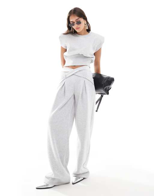 ASOS DESIGN – Szare eleganckie joggersy ze skrzyżowaną talią i szerokimi nogawkami