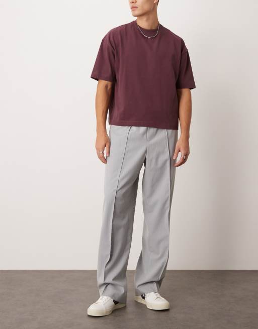 ASOS DESIGN – Szare eleganckie spodnie z szerokimi nogawkami w prążki