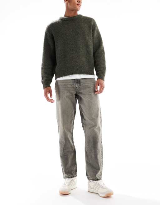 ASOS DESIGN – Szare legginsy z prostymi nogawkami i efektem sprania