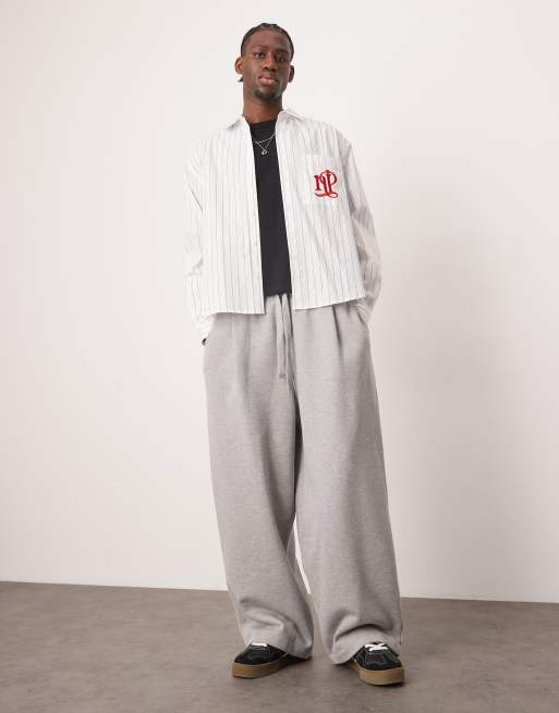 ASOS DESIGN – Szare melanżowe joggersy oversize z szerokimi nogawkami z grubego materiału