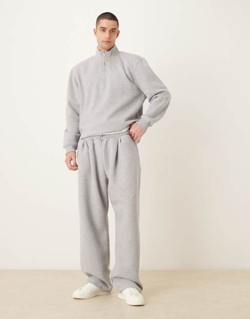 ASOS DESIGN – Szare melanżowe joggersy z szerokimi nogawkami z piki ze szczotkowanym spodem