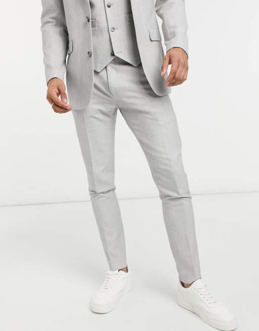 ASOS DESIGN – Szare ślubne spodnie garniturowe o bardzo obcisłym kroju z drobną teksturą