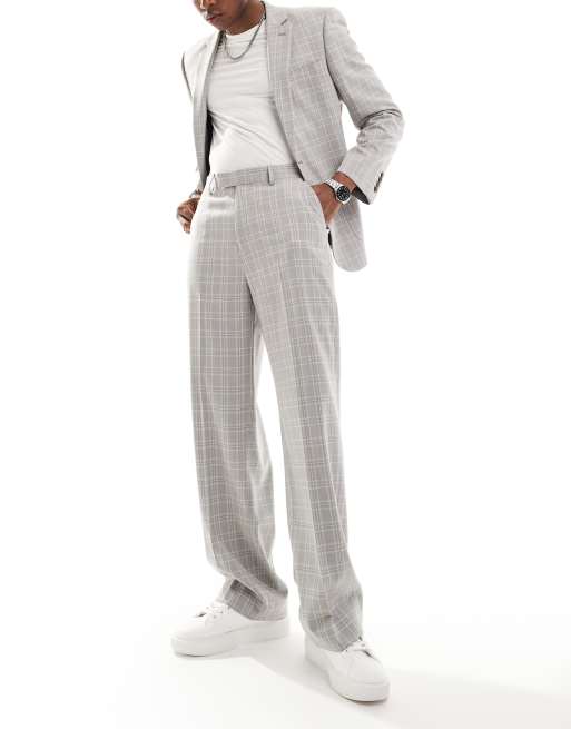 ASOS DESIGN – Szare spodnie garniturowe z szerokimi nogawkami w kratę w dopasowanym kolorze