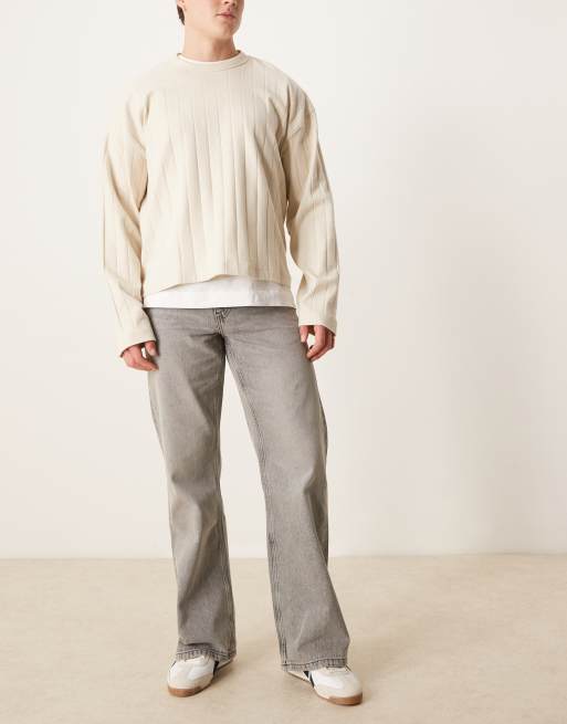 ASOS DESIGN – Szare sprane szerokie jeansy z rozszerzanymi nogawkami