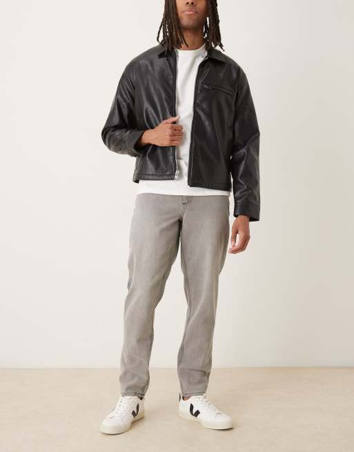 ASOS DESIGN – Szare zwężane jeansy z efektem sprania