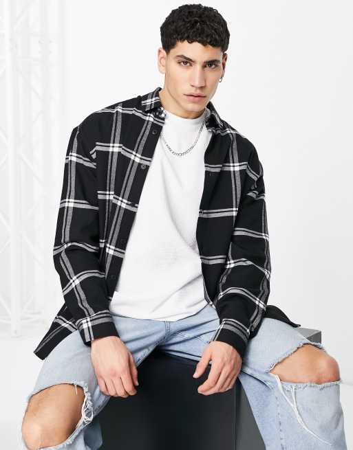 ASOS DESIGN – Szaro-biała koszula oversize w stylu lat 90. w kratę