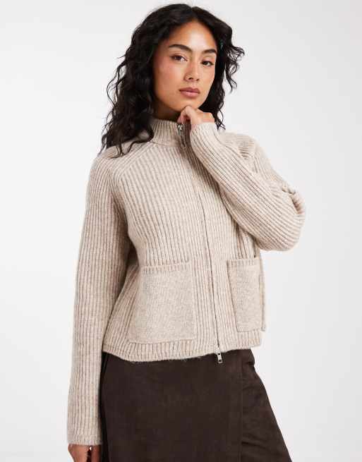 ASOS DESIGN – Szarobeżowa bomberka z prążkowanej dzianiny typu fisherman