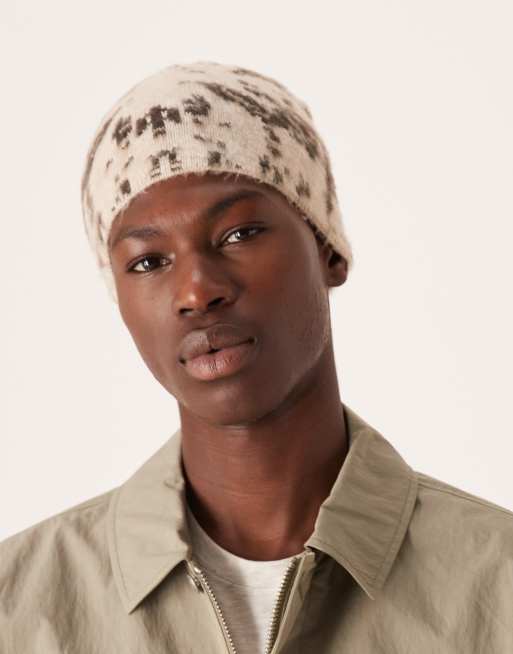 ASOS DESIGN – Szarobeżowa czapka beanie ze szczotkowanej dzianiny w krowie łaty