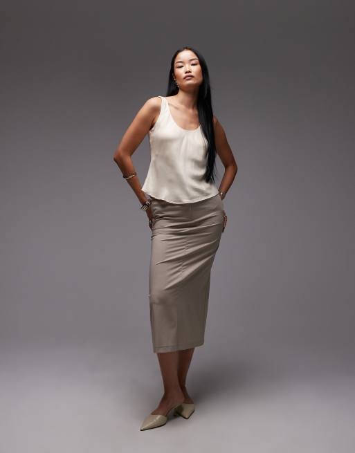 ASOS DESIGN – Szarobeżowa dopasowana spódnica ołówkowa midi z paskiem