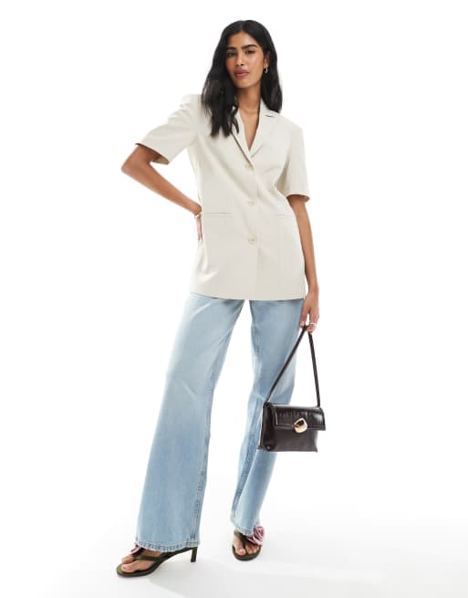 ASOS DESIGN – Szarobeżowa marynarka oversize o pudełkowym kroju z krótkim rękawem