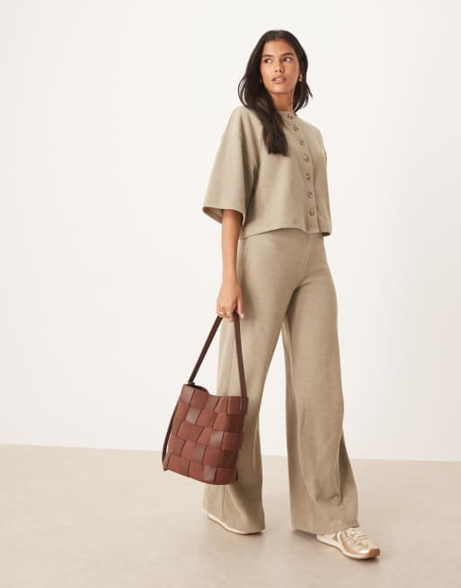 ASOS DESIGN – Szarobeżowe melanżowe spodnie z szerokimi nogawkami z bardzo miękkiego materiału