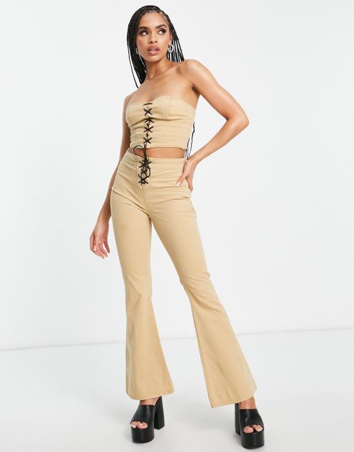 ASOS DESIGN – Szarobeżowe spodnie dzwony z ozdobnym wiązaniem, część zestawu
