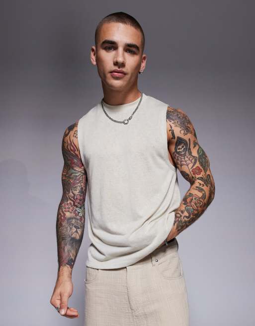 ASOS DESIGN – Szarobeżowy pudełkowy top bez rękawów z materiału o wyglądzie lnu