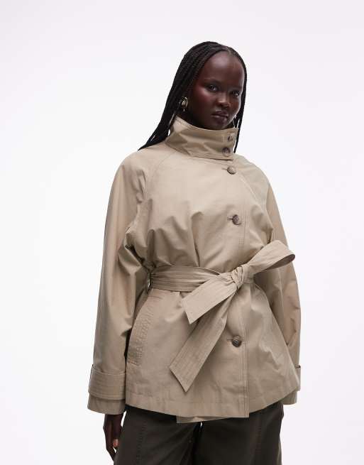 ASOS DESIGN – Szarobeżowy trencz z wysokim kołnierzem i wiązanym paskiem