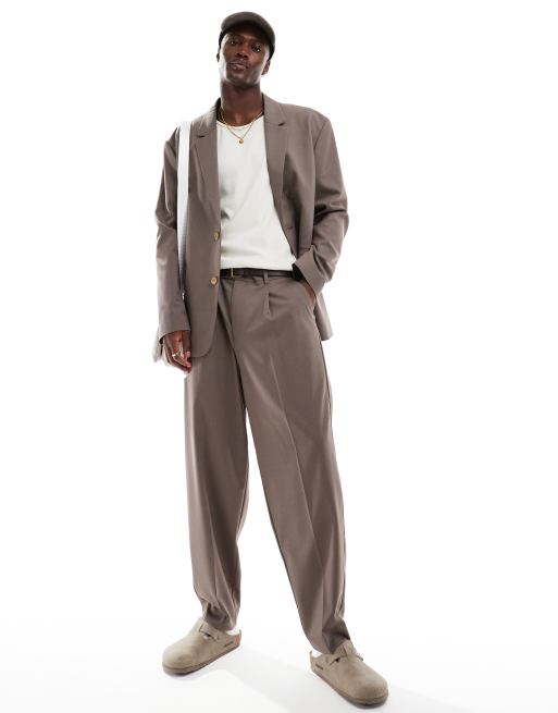 ASOS DESIGN – Szarobrązowe zwężane spodnie garniturowe oversize