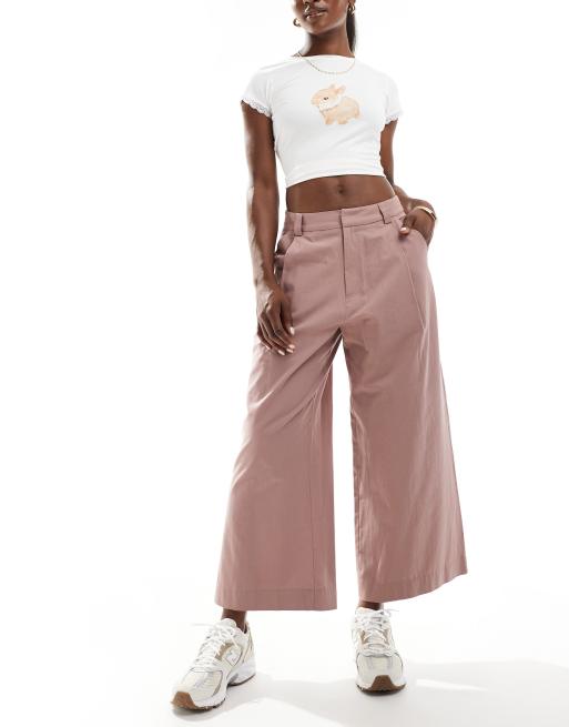 ASOS DESIGN – Szaroróżowe spodnie z szerokimi krótszymi nogawkami