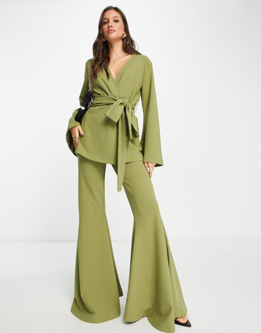ASOS DESIGN – Szarozielone dżersejowe spodnie garniturowe z bardzo rozszerzanymi nogawkami