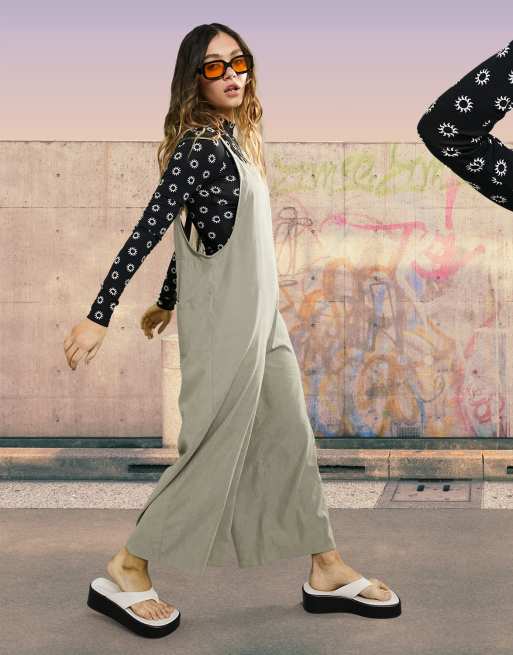ASOS DESIGN – Szarozielone minimalistyczne ogrodniczki z materiału cupro