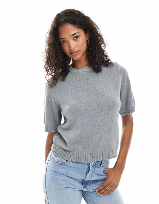 ASOS DESIGN – Szary, dzianinowy top z półrękawkami
