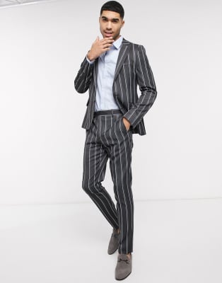 ASOS DESIGN – Szary garnitur w paski o obcisłym kroju