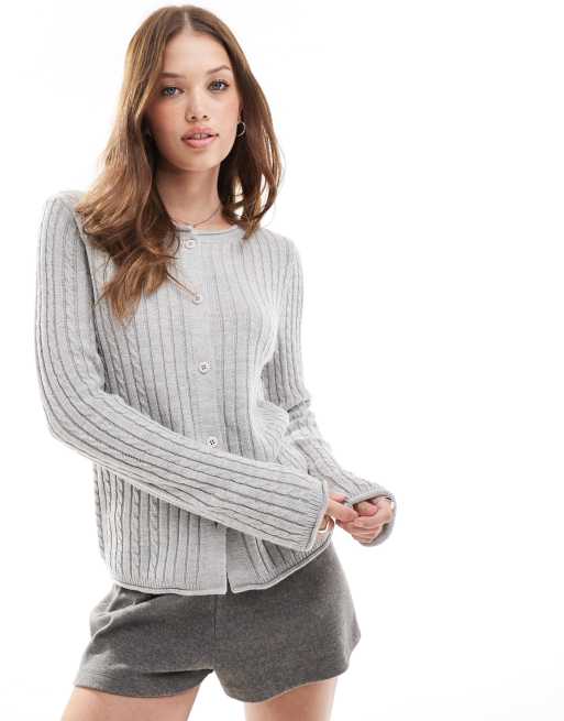 ASOS DESIGN – Szary kardigan z prążkowanej dzianiny o warkoczowym splocie