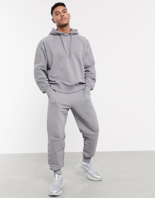 ASOS DESIGN – Szary komplet ze spodniami ze wstawkami w stylu motocyklowym
