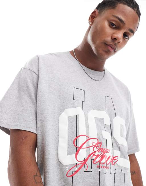 ASOS DESIGN – Szary krótki T-shirt oversize z nadrukiem miasta na piersi