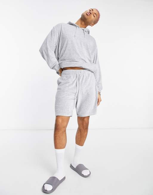 ASOS DESIGN – Szary melanżowy dres oversize z materiału frotté: szorty i bluza z kapturem