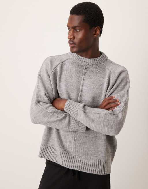 ASOS DESIGN – Szary melanżowy sweter pudełkowy super oversize z okrągłym dekoltem i zaszewkami z dzianiny