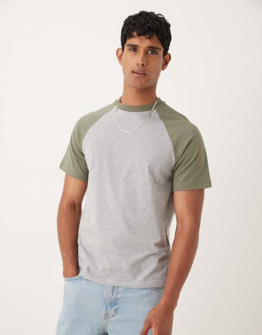 ASOS DESIGN – Szary melanżowy T-shirt z okrągłym dekoltem i kontrastowymi detalami