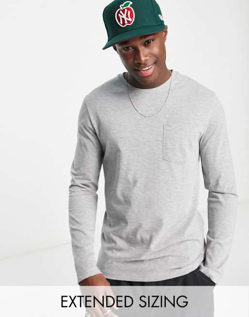 ASOS DESIGN – Szary melanżowy T-shirt z długim rękawem i kieszenią