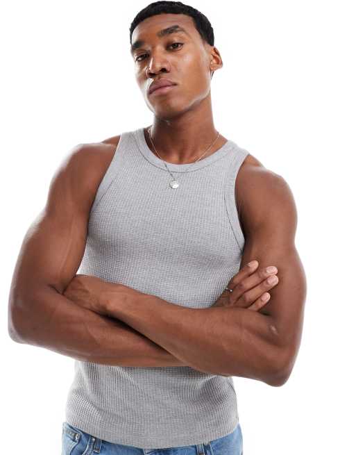 ASOS DESIGN – Szary melanżowy teksturowany podkoszulek o kroju podkreślającym sylwetkę
